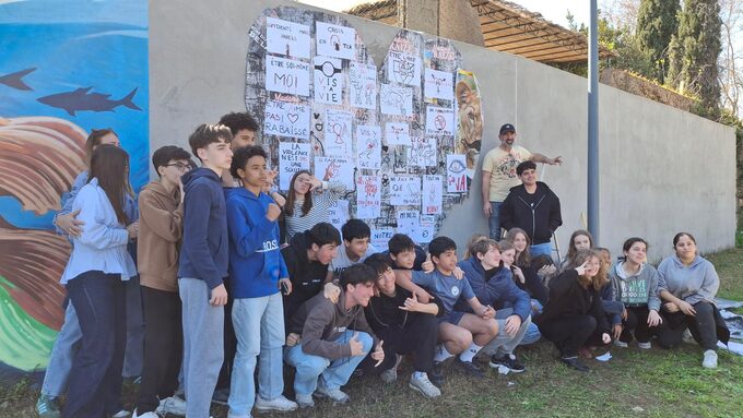 Collage de l'oeuvre finale, fruit du travail collectif mené avec l'artiste Jean Maurice Gaudry.