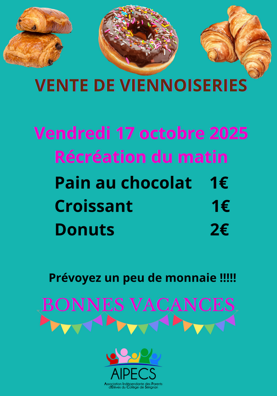 L'association des parents d'élèves AIPECS organise une vente de viennoiseries le vendredi 17 octobre.