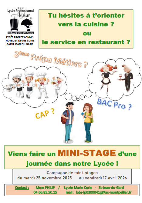 - Mail JPO et mini stages collèges et lycées 2024