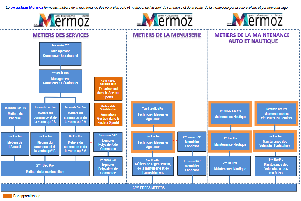 CAP Electricien, Bac Pro Maintenance des Système de Productions Connectés (MSPC), Bac Pro Modélisation et Prototypage 3D (MP3D), Bac Pro Famille des Métiers de la Transition Numérique et Énergétique (MTNE) qui débouche en 1ère vers les bac pro Cybersécurité, informatique et réseaux, électronique (CIEL) de l'ÉLectricité et de ses Environnements Connectés (MELEC)